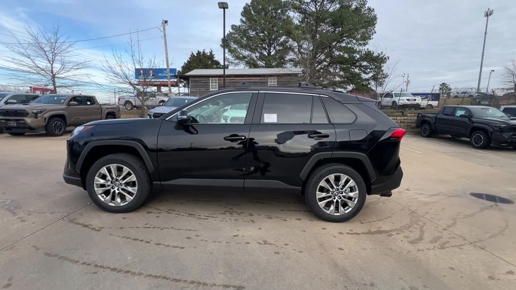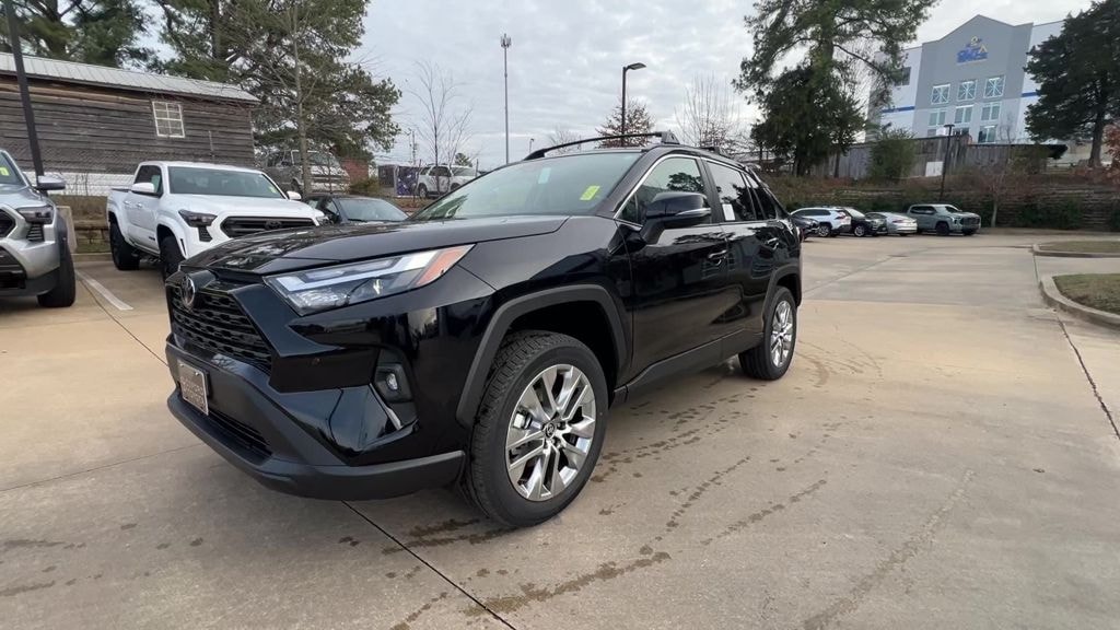 Midnight Black Metallic 2025 Toyota RAV4 XLE Premium FWD 8-Speed Automatic 2.5L 4-Cylinder DOHC Dual VVT-i Ash Artificial Leather, 3 Spoke Leather Heated Steering Wheel, 3 Spoke Leather Steering Wheel, 4-Wheel Disc Brakes, 6 Speakers, ABS brakes, Advanced Technology Package, Air Conditioning, Alloy wheels, AM/FM radio: SiriusXM, Anti-Theft System, Auto High-beam Headlights, Automatic temperature control, Blind Spot Monitor w/Lane Change Assist, Brake assist, Bumpers: body-color, Delay-off headlights, Driver door bin, Driver Seat w/2-Position Memory Function, Driver vanity mirror, Dual front impact airbags, Dual front side impact airbags, Electronic Inside Rear View Mirror, Electronic Stability Control, Emergency communication system: Safety Connect (10-year trial), Exterior Parking Camera Rear, Four wheel independent suspension, Front anti-roll bar, Front Bucket Seats, Front Center Armrest, Front dual zone A/C, Front reading lights, Front Seat Heating, Fully automatic headlights, Heated door mirrors, Illuminated entry, Intelligent Clearance Sonar, Knee airbag, Leather Shift Knob, Leather steering wheel, Low tire pressure warning, Occupant sensing airbag, Outside temperature display, Overhead airbag, Overhead console, Panic alarm, Parking Support Alert & Brake, Passenger door bin, Passenger vanity mirror, Power door mirrors, Power driver seat, Power Liftgate, Power moonroof, Power steering, Power windows, Radio data system, Radio: AM/FM/XM Audio System, Rear anti-roll bar, Rear seat center armrest, Rear window defroster, Rear window wiper, Remote keyless entry, SofTex Seat Trim, Speed control, Speed-sensing steering, Split folding rear seat, Spoiler, Steering wheel mounted audio controls, Tachometer, Telescoping steering wheel, Tilt steering wheel, Traction control, Trip computer, Turn signal indicator mirrors, Variably intermittent wipers, Weather Package, Wheels: 19" 5-Spoke Silver Alloy, Wireless Phone Charger, XLE Premium Package, Ash Artificial Leather.