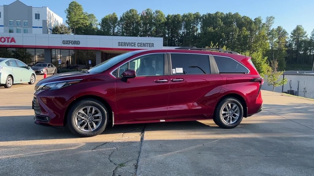 Ruby Flare Pearl 2025 Toyota Sienna XLE FWD CVT 2.5L I4 17" Alloy Wheels, 3rd row seats: split-bench, 4-Wheel Disc Brakes, 8 Speakers, ABS brakes, Air Conditioning, Alloy wheels, AM/FM radio: SiriusXM, Apple CarPlay/Android Auto, Auto High-beam Headlights, Auto-dimming door mirrors, Auto-dimming Rear-View mirror, Automatic temperature control, Axle Ratio: TBD, Brake assist, Bumpers: body-color, Carpet Floor Mats (TMS), Compass, Delay-off headlights, Driver door bin, Driver vanity mirror, Driver's Seat Mounted Armrest, Dual front impact airbags, Dual front side impact airbags, Electronic Stability Control, Emergency communication system: Safety Connect (3-year trial), Exterior Parking Camera Rear, Four wheel independent suspension, Front anti-roll bar, Front Bucket Seats, Front dual zone A/C, Front fog lights, Front Heated Bucket Seats, Front reading lights, Fully automatic headlights, Garage door transmitter: HomeLink, Heated door mirrors, Heated front seats, Illuminated entry, Knee airbag, Lane Departure Warning System, Leather Shift Knob, Leather steering wheel, Low tire pressure warning, Mudguards (TMS), Occupant sensing airbag, Outside temperature display, Overhead airbag, Overhead console, Panic alarm, Passenger door bin, Passenger seat mounted armrest, Passenger vanity mirror, Power door mirrors, Power driver seat, Power Liftgate, Power moonroof, Power passenger seat, Power steering, Power windows, Radio data system, Radio: Toyota Audio Multimedia w/8 Speakers, Rear air conditioning, Rear anti-roll bar, Rear dual zone A/C, Rear reading lights, Rear side impact airbag, Rear window defroster, Rear window wiper, Reclining 3rd row seat, Remote keyless entry, Roof Rails, SofTex Seat Trim, Speed control, Speed-sensing steering, Split folding rear seat, Spoiler, Steering wheel mounted audio controls, Tachometer, Telescoping steering wheel, Tilt steering wheel, Traction control, Trip computer, Turn signal indicator mirrors, Variably intermittent wipers.