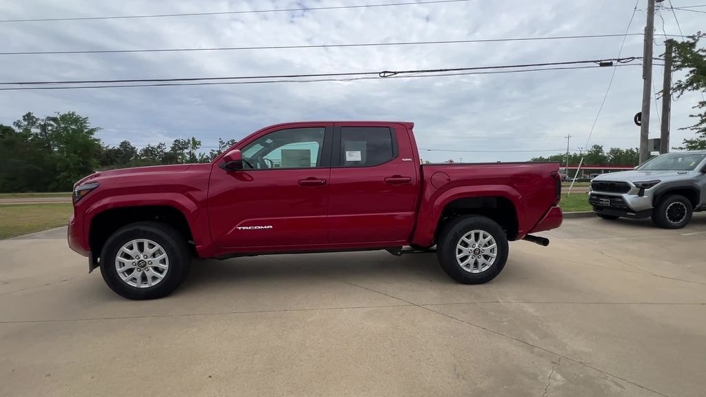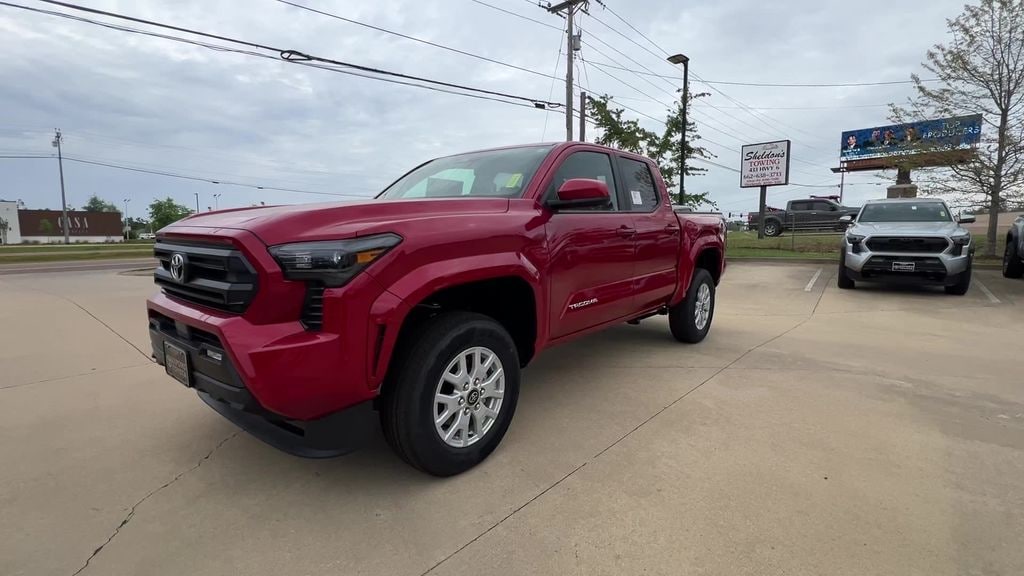 Supersonic Red 2026 Toyota Tacoma SR5 4WD 8-Speed Automatic 2.4L 4-Cylinder 4WD, 3.583 Axle Ratio, 4-Wheel Disc Brakes, 6 Speakers, ABS brakes, Air Conditioning, Alloy wheels, AM/FM radio: SiriusXM, Anti-whiplash front head restraints, Apple CarPlay/Android Auto, Auto High-beam Headlights, Auto-dimming Rear-View mirror, Brake assist, Bumpers: body-color, Carpeted Floor Mats, Driver door bin, Dual front impact airbags, Dual front side impact airbags, Electronic Stability Control, Emergency communication system: Safety Connect (up to 10-year trial subscription), Exterior Parking Camera Rear, Fabric Seat Trim, Four wheel independent suspension, Front anti-roll bar, Front Bucket Seats, Front Center Armrest, Front fog lights, Front reading lights, Fully automatic headlights, Heated door mirrors, Illuminated entry, Knee airbag, Low tire pressure warning, Occupant sensing airbag, Outside temperature display, Overhead airbag, Overhead console, Panic alarm, Passenger door bin, Power door mirrors, Power steering, Power windows, Radio: 8" Toyota Audio Multimedia, Rear step bumper, Rear window defroster, Remote keyless entry, Speed control, Speed-sensing steering, Split folding rear seat, Spray-on Bed Liner, Steering wheel mounted audio controls, Tachometer, Telescoping steering wheel, Tilt steering wheel, Traction control, Trip computer, Variably intermittent wipers, Wheels: 17" Styled Alloy, 4WD.